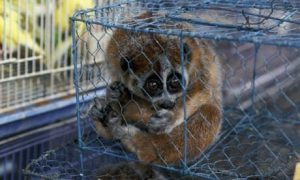 Slow Lorises are omnivorous; their diet consists of insects, nectar, fruits, eggs, small reptiles, and even small birds.