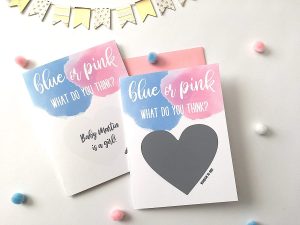 Pass these around at the party, and at the end of a countdown, get everyone at the party to scratch the card, which will reveal the gender of the baby. It’s easy to DIY these scratch-off vouchers, or you can order them. You can even keep them as a remembrance of the celebratory day. With the circuit-breaker still at hand, these are great for relatives and friends living in different parts of the country or the world; mail it to them so they too can be involved in the reveal.