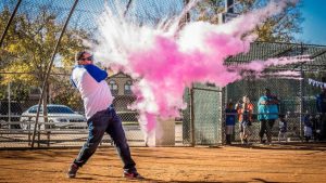 The initial idea being baseball, but as Singaporeans, the game that unites is football, or you can go with any sport that involves a ball getting in aggressive contact. Let each guest take a swing at the coloured powder filled balls or a kick at it. To keep the anticipation going, get white powder fill balls and let guests have a go at them until the real ball with the reveal colour unveils itself with a bang!