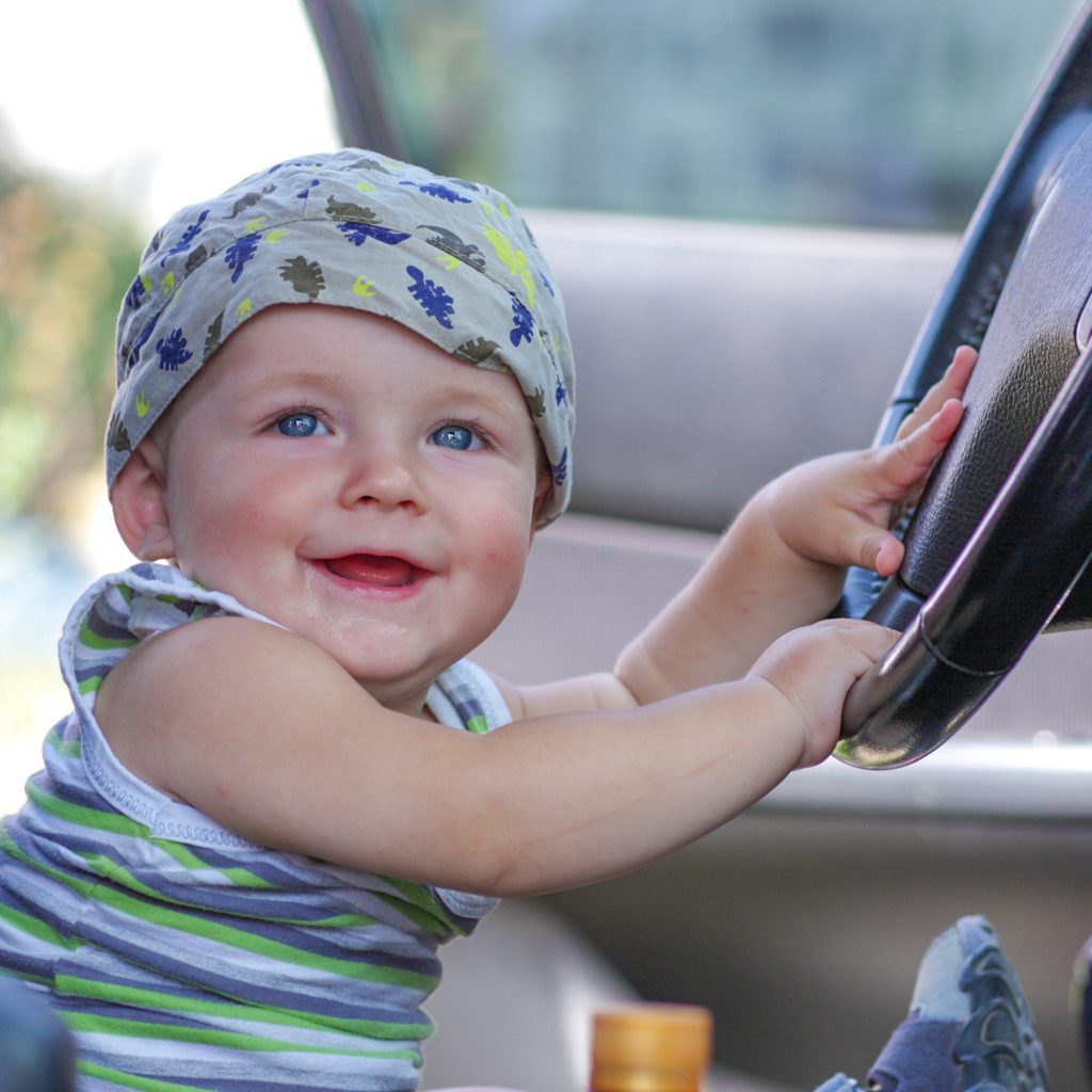 Road trip or not, a safe and sturdy baby seat should always be fastened in the back seat of the car at all times. A baby should never board any vehicle without proper seating secured.